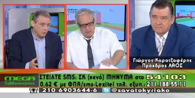 “Είναι λάθος η συνταγή. Πρέπει να επιστρέψουμε στη δραχμή. Η Ελλάδα πρέπει να εκδώσει 100 – 200 δισ. εκατ. ομόλογα και να πληρώνεται ο λαός με ομόλογα. [...] Επίσημο νόμισμα το ευρώ αλλά εγχώρια να μπορεί να αναζωογονηθεί η ελληνική αγορά" δήλωσε ο ο κ. Καρατζαφέρης.